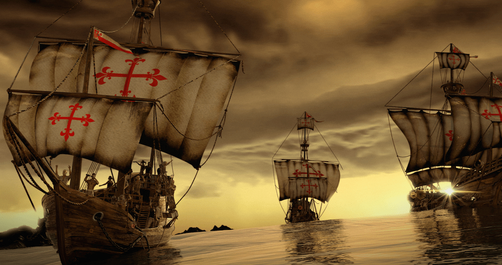 El 3 de agosto de 1492 partió la expedición desde el puerto de Palos (España) con alrededor de 89 hombres, en 2 carabelas, la Pinta y la Niña, y una nao llamada Santa María, en una travesía que duró dos largos y penosos meses. El 12 de octubre de 1492 avistaron tierra firme. Colón llegó a una isla en la zona de las Bahamas, a la que denominó San Salvador, lugar que los nativos llamaban Guanahani, tierras que fueron tomadas en nombre de los reyes de Castilla.